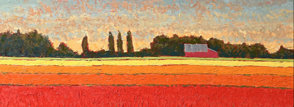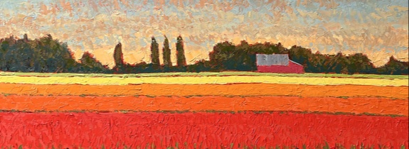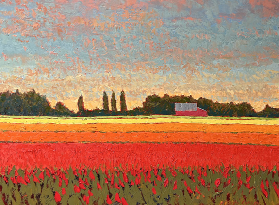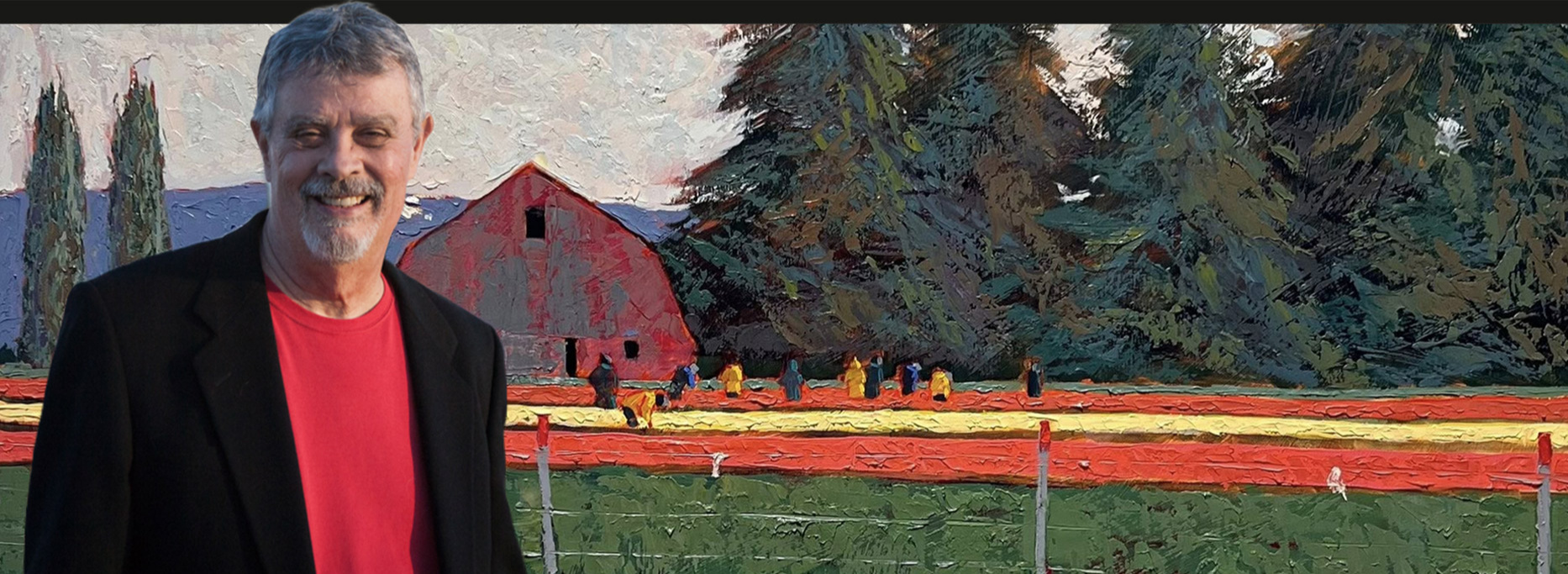 Since relocating to Anacortes, Washington in 1991, Currier has become deeply rooted in the culture and visual language of the Pacific Northwest. The region’s sweeping landscapes, especially the Skagit Valley’s tulip fields and the migrant workers who labor in them, are frequent subjects in his paintings. Through bold impasto strokes and atmospheric plein air scenes, he captures the unique blend of human resilience and natural beauty that defines the area.